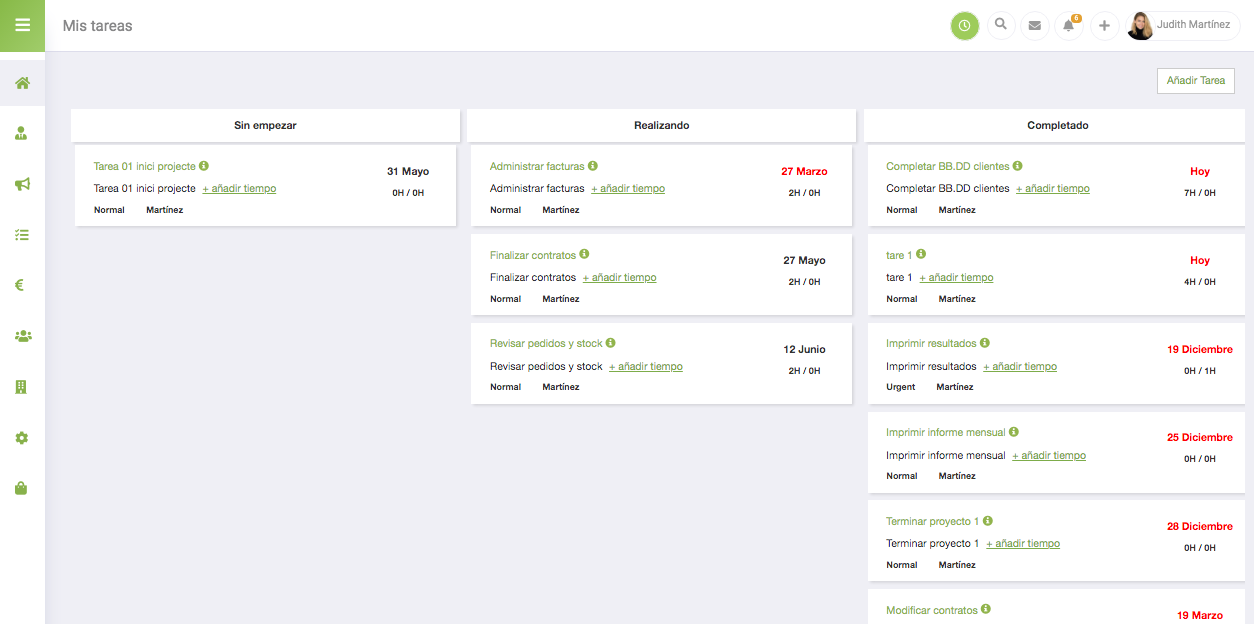Por ejemplo, puedes establecer unas tareas que pertenezcan a un proyecto de un cliente, para así tener todo organizado y no perder tiempo en buscar o consultar aquella tarea que tienes pendiente de hacer, porque tendrás todo vinculado en el mismo sitio. Te resultará más ligero de hacer y podrás medir mejor el tiempo que te ha llevado cada parte.